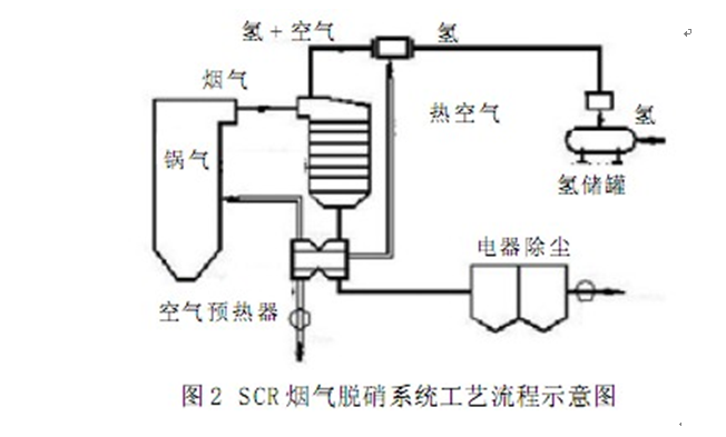在催化剂作用下,向温度约280~420℃的烟气中喷入氨,将NO和NO2还原成N2和H2O。化学反应方程式如下: